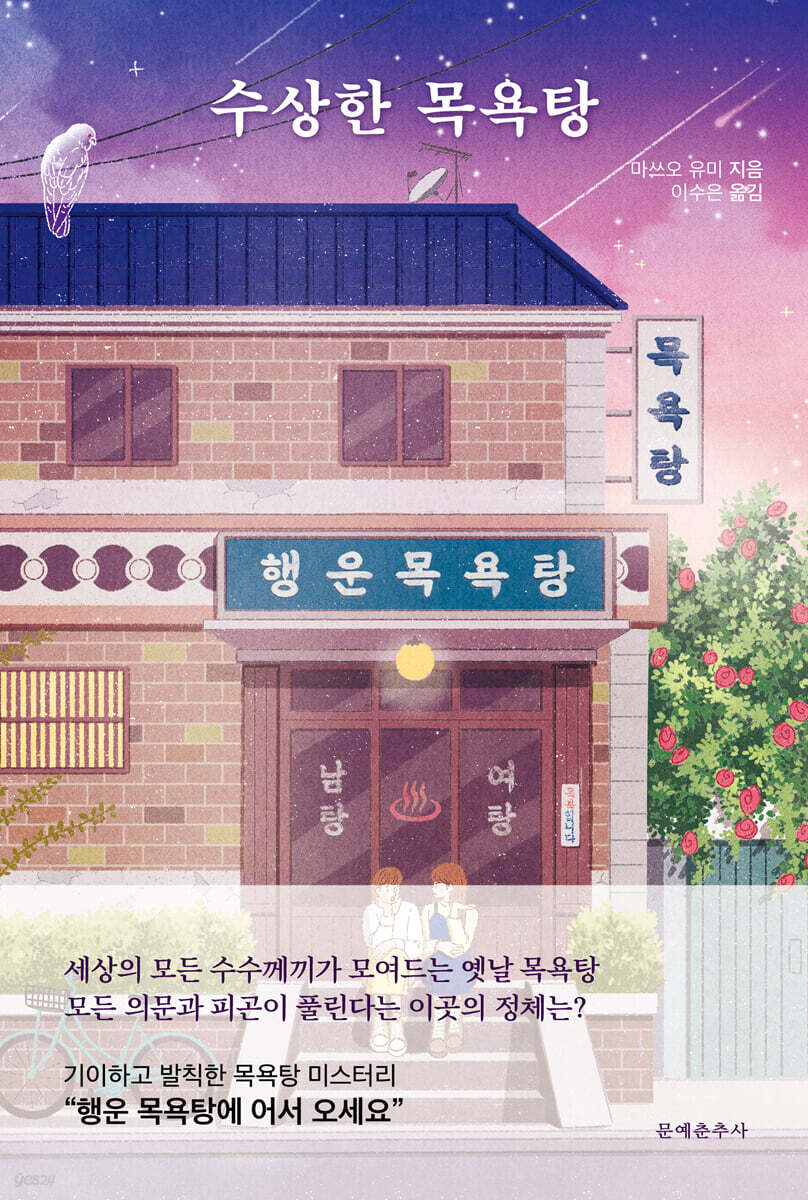 일상과 비현실, 현실과 가상이 어우러지는 독특한 설정과 유머러스한 작품 세계를 구축해나가며 따뜻한 이야기를 들려주는 작가 ‘마쓰오 유미’의 공간 소설이 출간되었다. 사회 속에서 상처 받은 두 자매가 우연히 ‘행운 목욕탕’을 운영하게 되면서 겪게 되는 수수께끼들은 독자들을 단번에 사로잡는다. 미스테리하면서도 흥미있는 단서들을 따라 마치 탐정처럼 책을 읽다보면 어느새 깜짝 놀랄만한 결말을 맛볼 수 있을 것이다. 목욕탕에서 몸을 풀고 나와 마시는 바나나우유처럼 달콤하고 노곤노곤해지는 기분까지 만나볼 수 있는 『수상한 목욕탕』을 만나보시길!